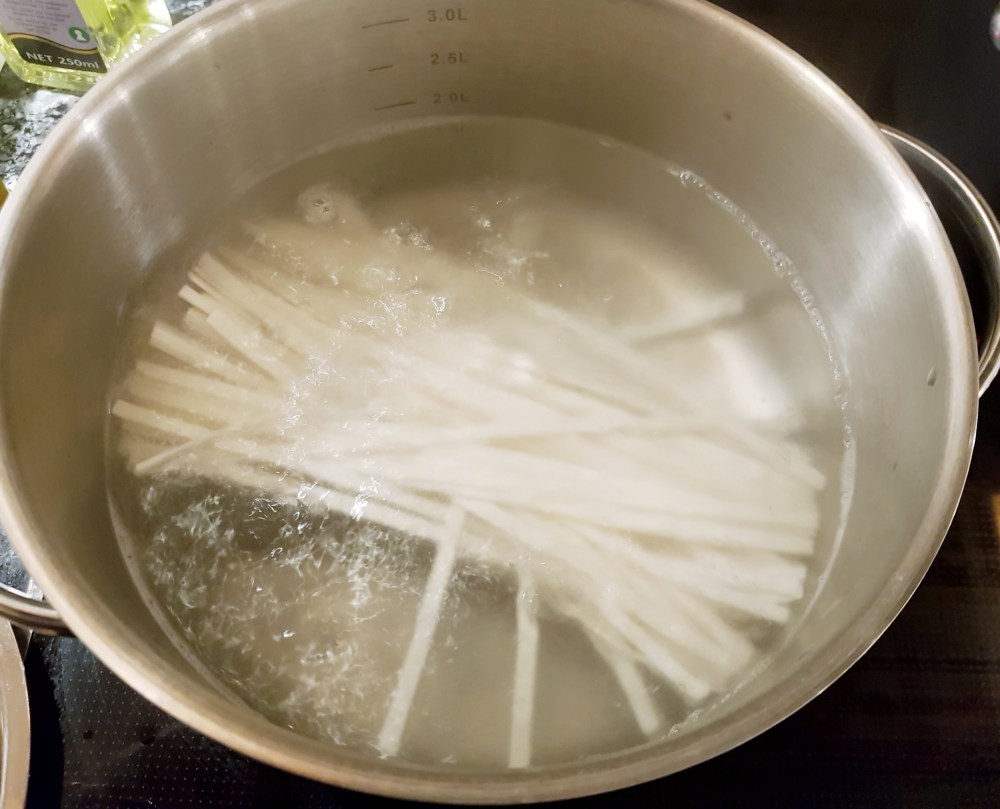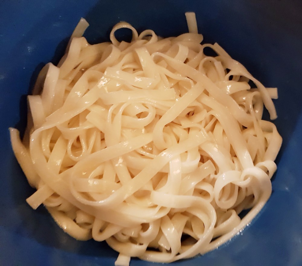 Jeg kokte først nudlene etter oppskrift på pakken (8 minutter for disse)