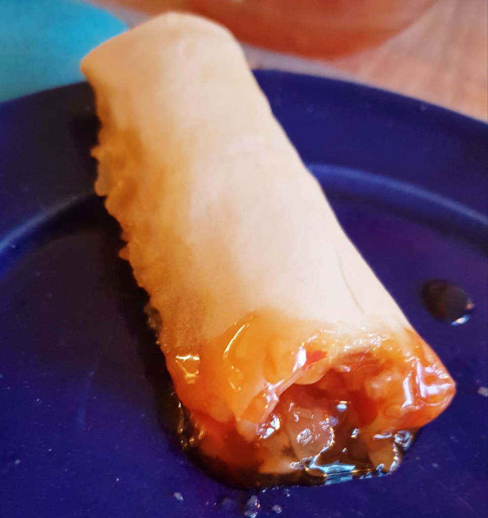 De ble servert med chilisaus til dypping og vi syntes de var megagode…