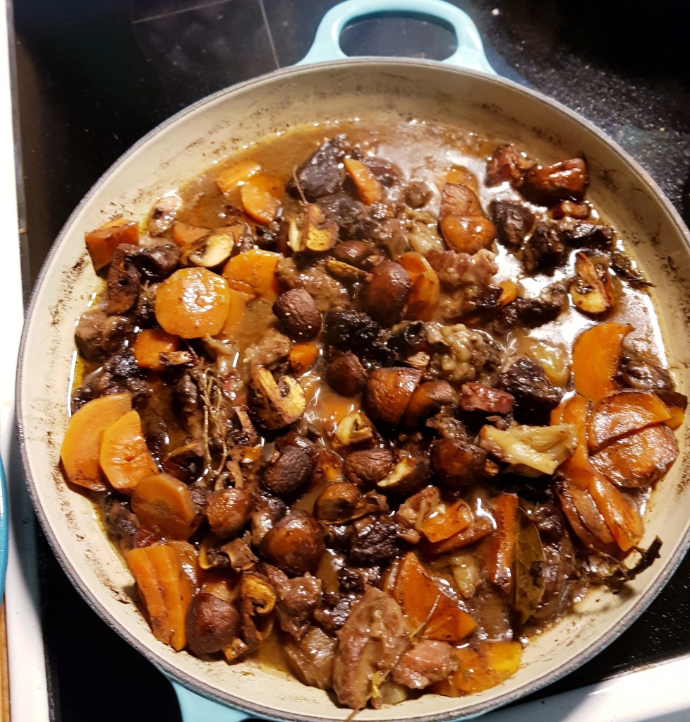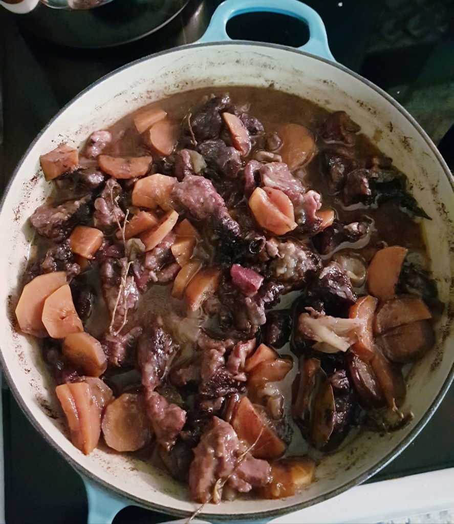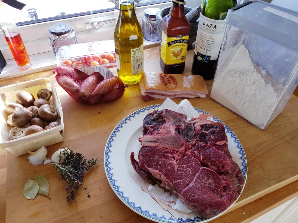Den franske klassikeren Biff Bourguignon tar tid å lage men det er verdt det. Den kan godt lages dagen før servering, det blir den i grunnen bare enda bedre av. Det er en rustikk rett som passer hvis du skal servere mange og også hvis dere er få- da får du forhåpentlig rester som du kan ha til lunsj eller en ny middag. Av denne porsjonen her har vi hatt to middager og to lunsjer. Den ferdige retten kan også fryses ned. Her har jeg brukt oksehøyrygg som jeg fant på Meny i disken for nedsatte varer på grunn av dato..