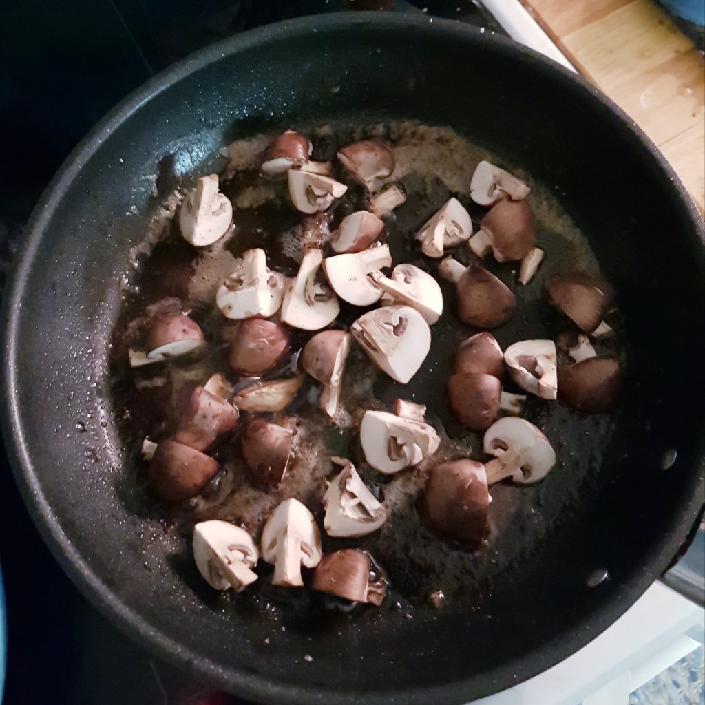 Rett før servering ble soppen delt i mindre biter og brunet i smør og deretter tilsatt til gryten
