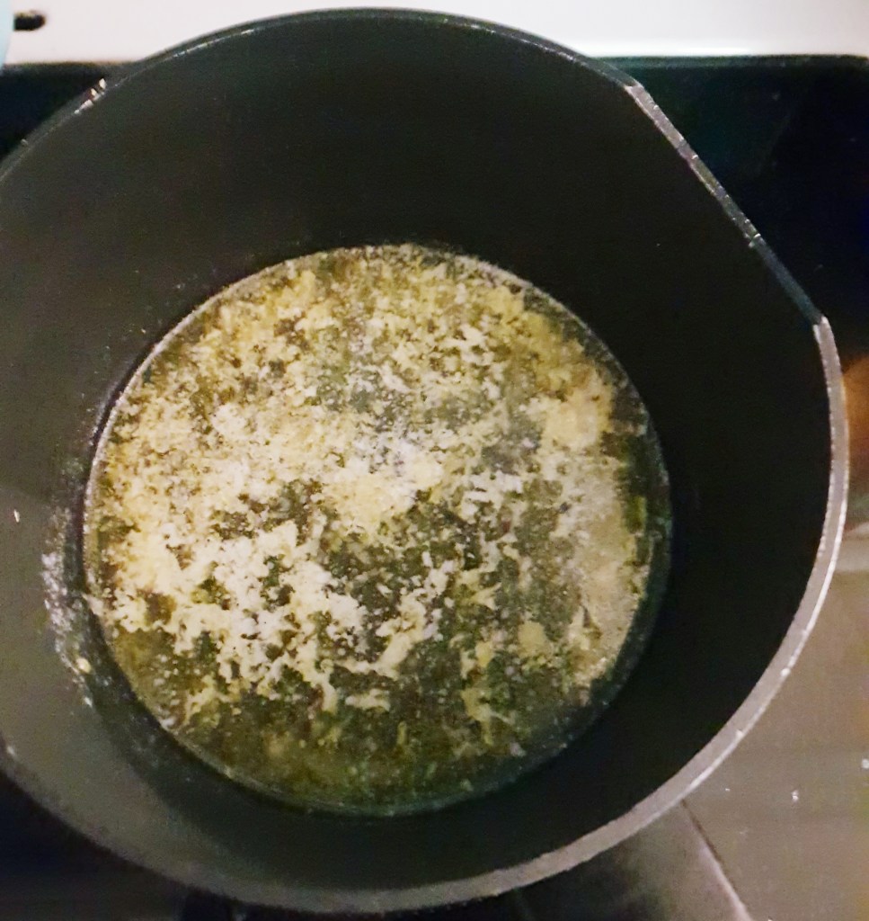 Et par spiseskjeer smør ble smeltet forsiktig i en gryte sammen med revet skall av 1/2 sitron- smøret skal ikke bli brunt.