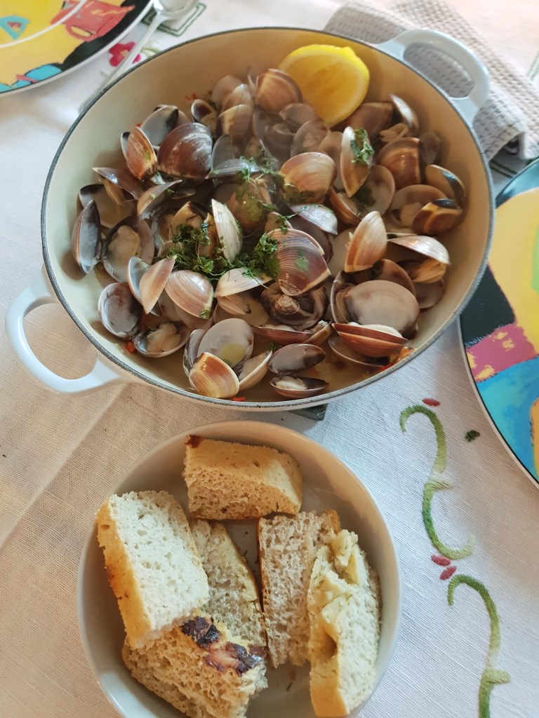 Skjell i hvitvin med foccacia