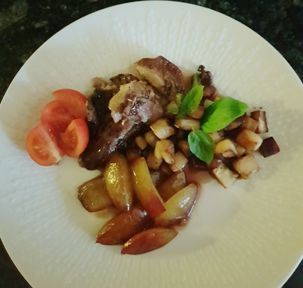 Andelår med plommesaus og pannestekt pastinakk
