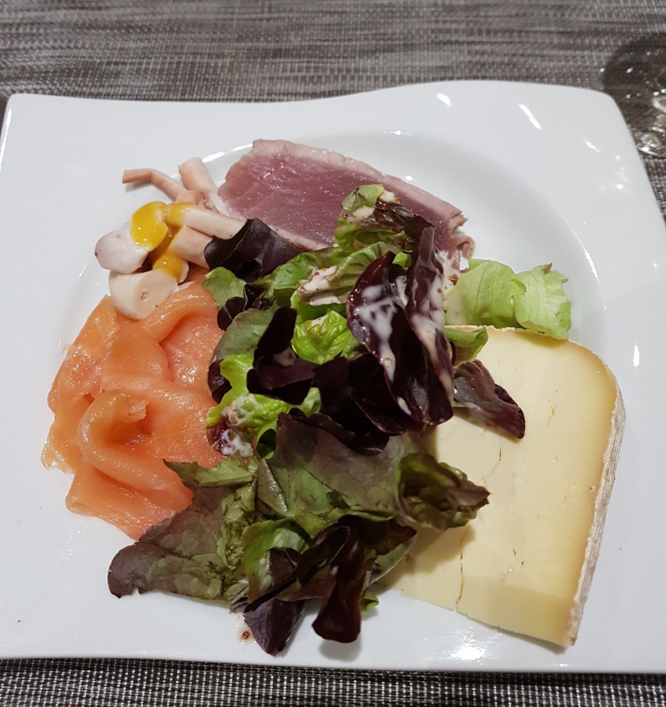 Litt oppløftet av dette lille intermezzoet kløv vi inn i bilen igjen og tok fatt på de siste 170 kilometerne. Veien her var av en helt annen standard, det ble plutselig stupmørkt og regnet trommet på vinduene. Det ble lange mil og vi var superfornøyd da vi endelig kunne parkere utenfor Hotel le Chateau Fort de Sedan og treffe igjen den andre bilen. Her fikk vi utrolig god service, kjøkkenet var stengt og likevel ble vi servert en tallerken med kald mat og noe godt i glasset. Stemningen var høy rundt bordet der i resepsjonsbaren og vi er utrolig glade for at den blide og humørfylte resepsjonisten ordnet alt så fint for oss