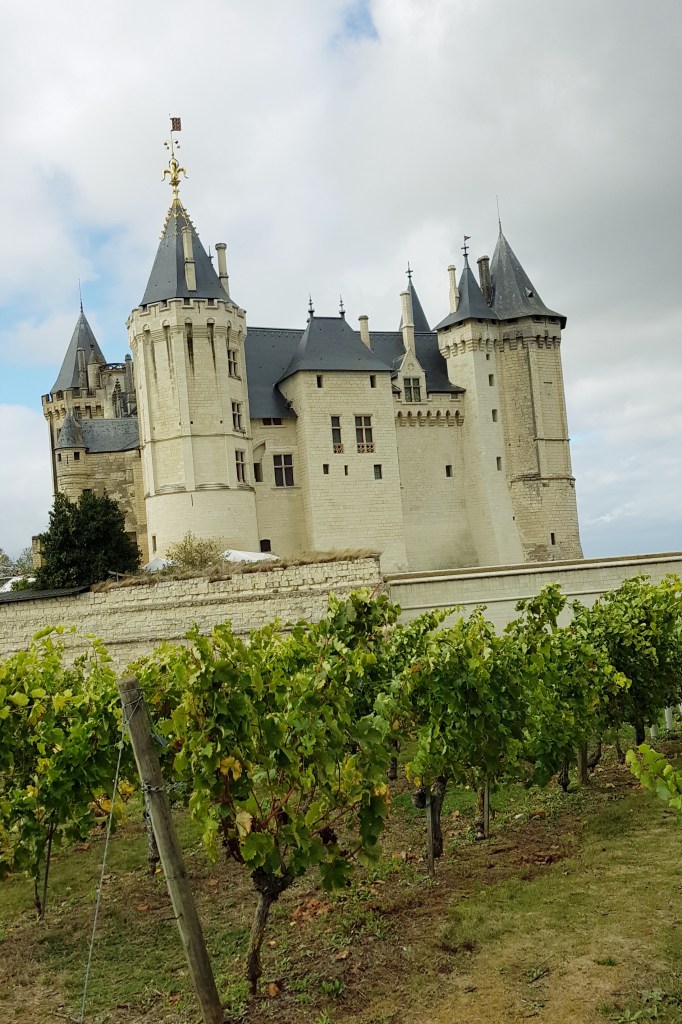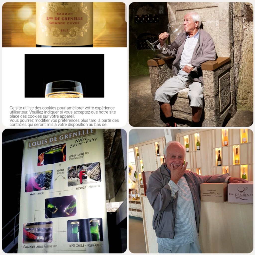 Saumur er en by og en vinregion i Loire som et spesielt kjent for musserende vin og rødviner laget av Cabernet franc. Hvitviner lages for det meste av druen Chenin Blanc. Under byområdet er det store og lange gamle gruveganger fra den gangen de utvant kalkstein. Disse gruvegangene har perfekt temperatur og fuktighet for å produsere vin. Vårt første stopp var hos vinhuset Bouvet Ladubay. Dette er et vinhus som ikke har egne druer men som kjøper druesaft fra andre produdenter og lager musserende vin og vanlig vin fra denne saften. Vi ble veldig imponert over stedet, de har også hatt en skulptør som har laget «rester » av gamle monumenter for å få den rette stemningen i gruvegangene. Her lages musserende vin både som cremant de Loire (store bobler) og som brut ( små bobler som stiger opp fra midten av vine).