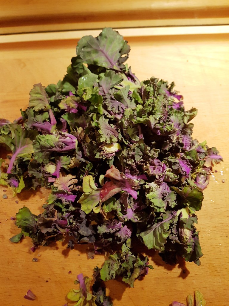 Rosettkål er en krysning mellom rød grønnkål og rosenkål. Du ser den av og til i butikkene og jeg fant den da jeg var innom gårdsbutikken Tomter mais i Drøbak. Den vokser på stokker slik som rosenkål og i følge Opplysningskontoret for frukt og grønt er den veldig næringsrik.