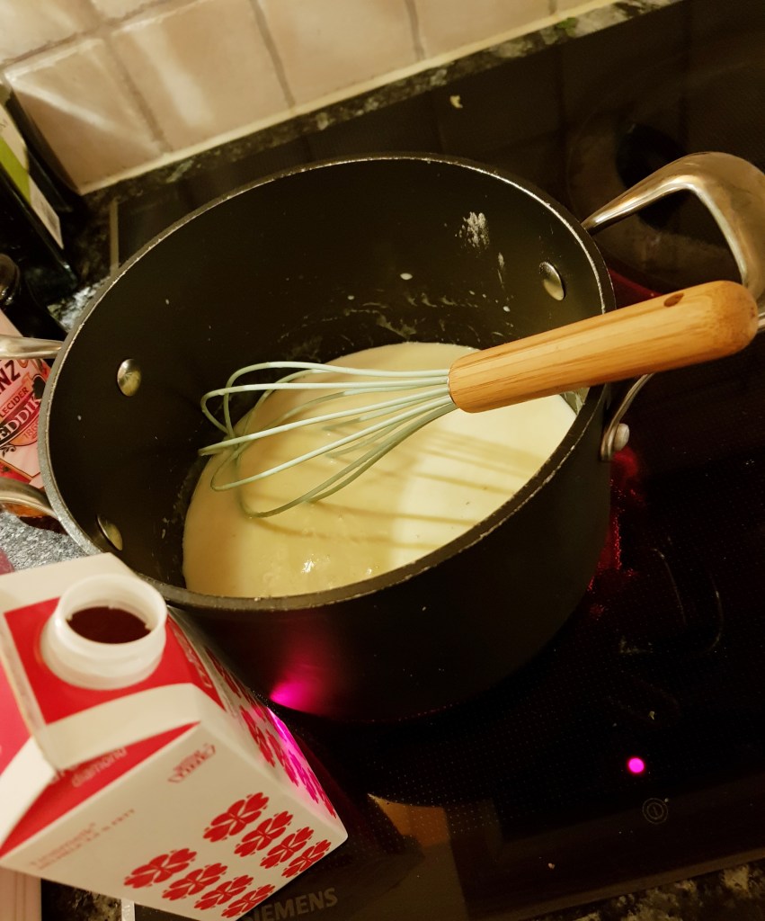Her har jeg laget en ostesaus med forskjellige osterester som jeg har brukt til å gratinere rosettkålen med.