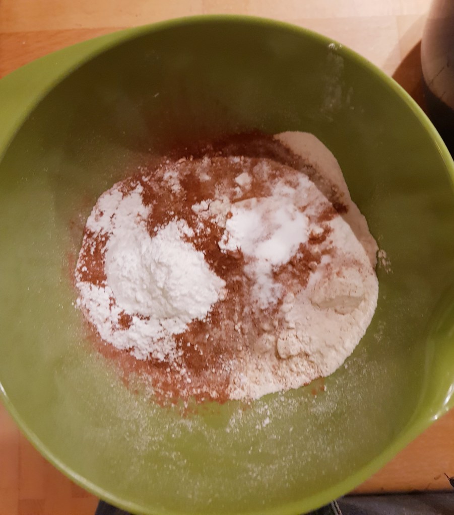 Blandet alt det tørre i en skål og siktet det opp i kremen og rørte. Helte alt ut på bordet og brukte hendene til å få en fin smidig deig.