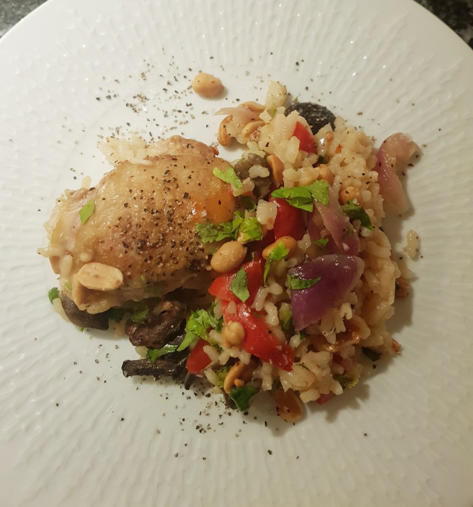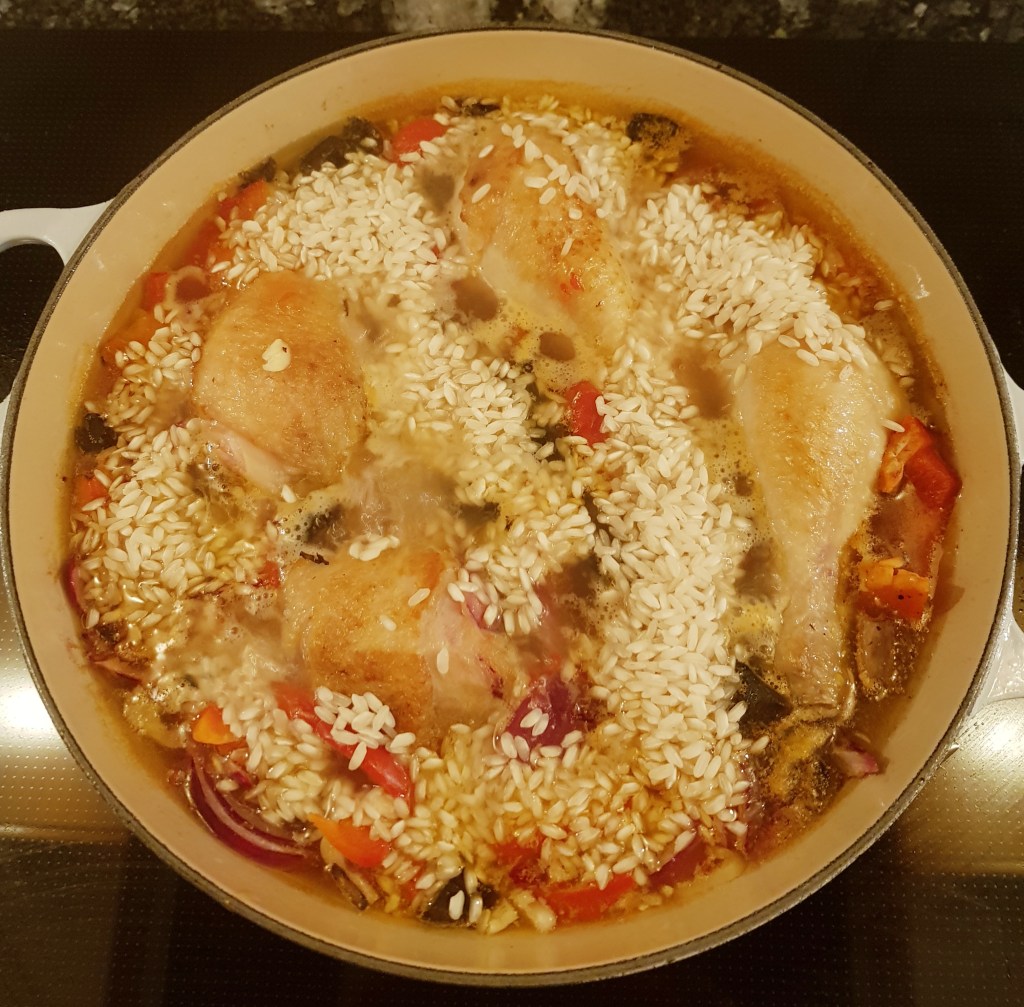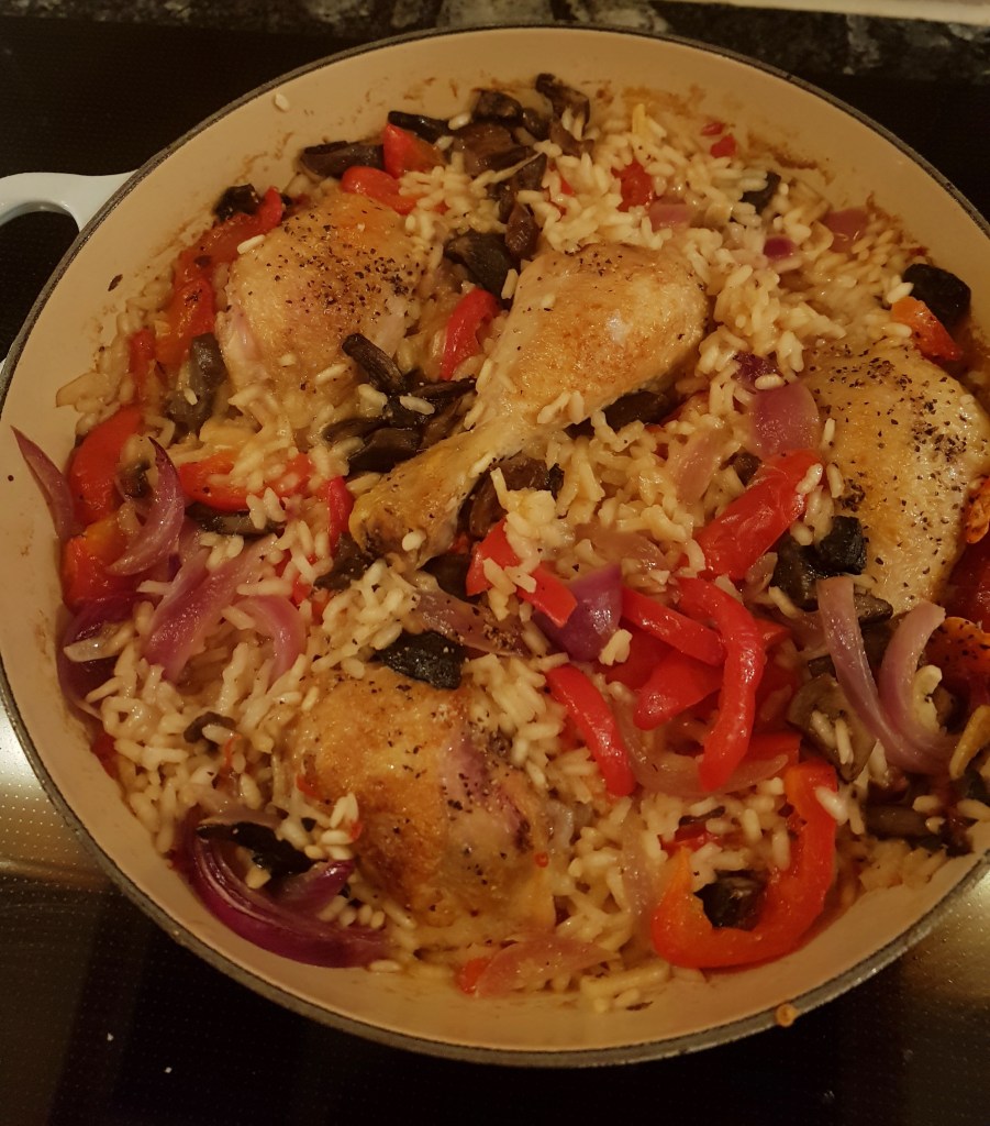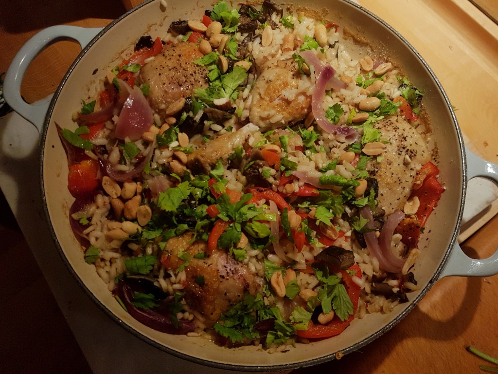 Dette er en alt-i-ett gryte som lages i to trinn. Hovedbestanddelene er ris og kyllinglår og i tillegg kan du så og si ha oppi det meste- en fin måte å rydde i kjøleskapet på. Oppskriften her tar utgangspunkt i «Familiekokeboka» av Gausdal og Alfsen med noen modifikasjoner.