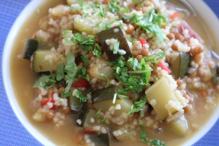 Bulguren ble tilsatt og alt kokte videre i 10 minutter til bulguren var mør.