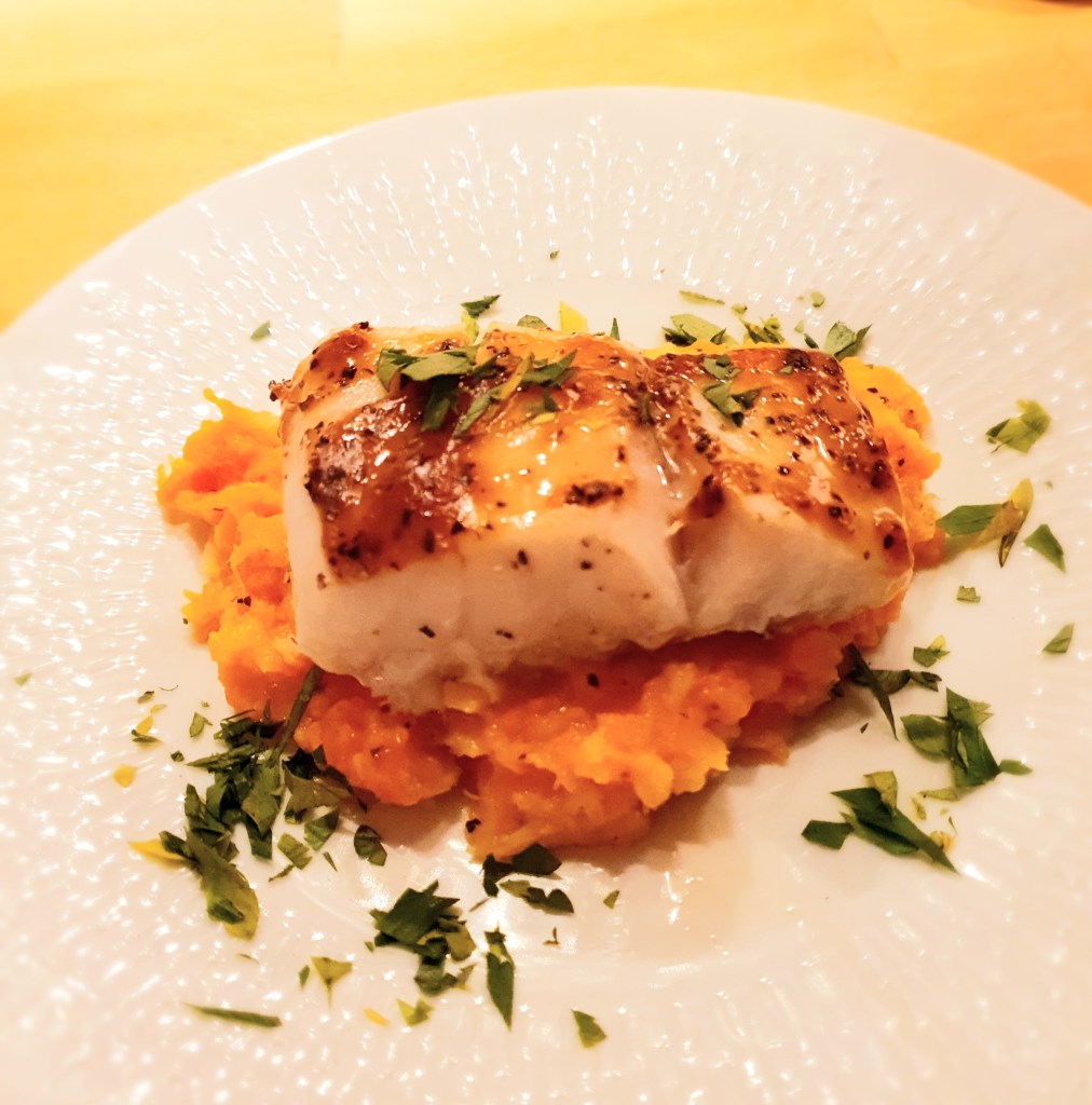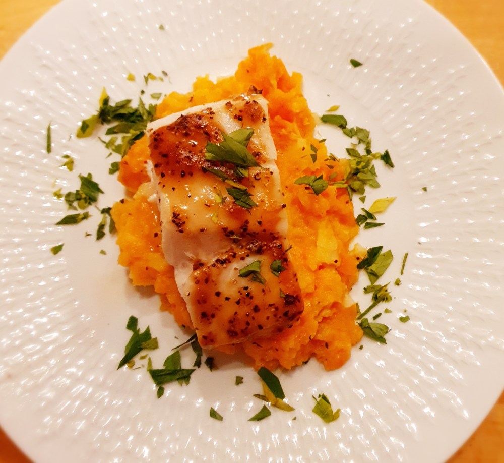 Mosen passer til både fisk og kjøtt, den er et friskt alternativ til kålrabistappe. Denne gangen ble den servert som tilbehør til ovnsbakt torskerygg som ble penslet med en chili-soyasaus som du finner oppskrift på her.