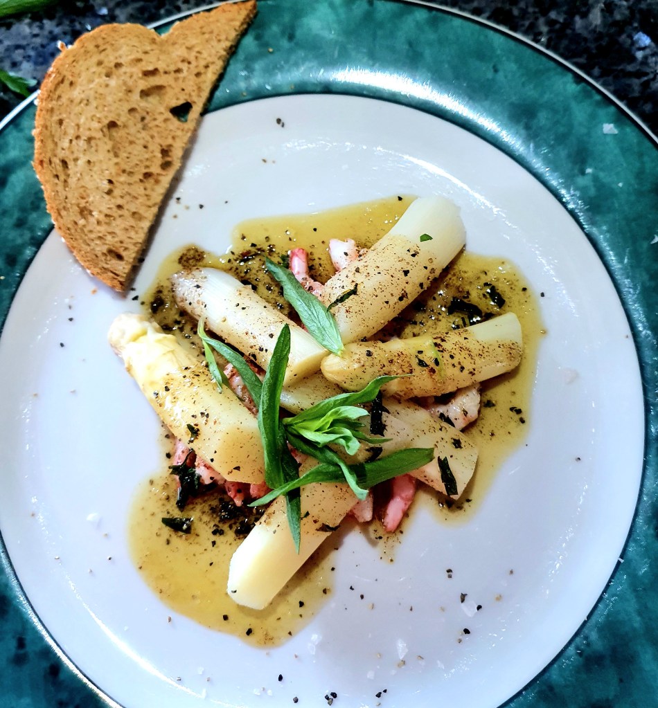 - Asparges med reker og brunet smør med estragon (2 personer)