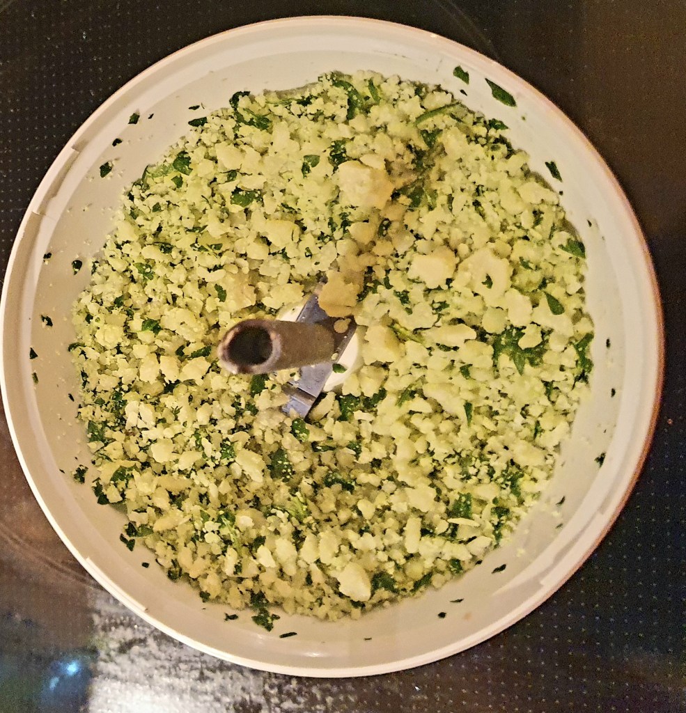 Pastaen ble kokt i godt saltet vann etter instruksjon på pakken. Parmesan og bladpersille ble hakket i en minihakker, evt kan du rive osten og hakke persillen for hånd.