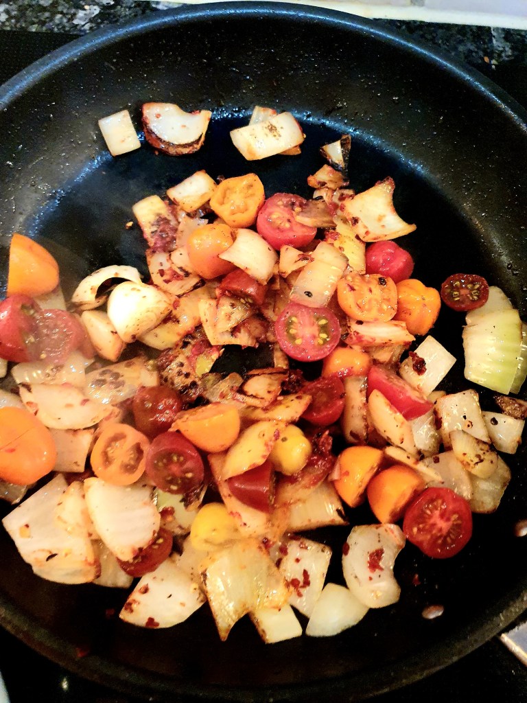 2 store eller 8-10 små tomater (jeg brukte små plommetomater med forskjellig farge)