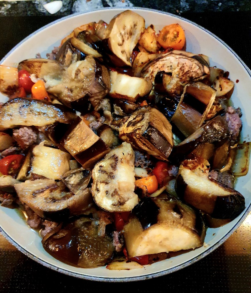Dette er en tyrkisk aubergine gryte som opprinnelig ble laget med lammekjøtt. Oppskriften er inspirert av Vidar Bergum, en nordmann som bor i Istanbul. Jeg hadde ikke lammekjøtt og brukte kjøttdeig fra storfe istedenfor. Smaken blir selvsagt en annen, uansett blir det veldig godt. Gryta kan lages ferdig på forhånd og varmes opp.