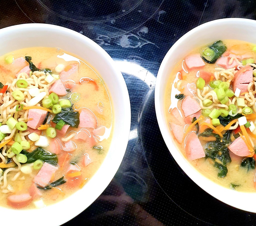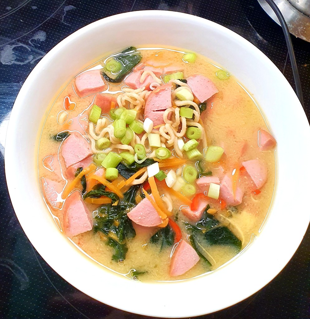 Dette er en veldig enkel, men smakfull misosuppe som du fort kan raske sammen på en hverdag. Miso, som er en paste av fermenterte bønner får du lettest kjøpt i asiatiske butikker i større forpakninger men jeg har også sett miso på mindre glass på feks Meny.