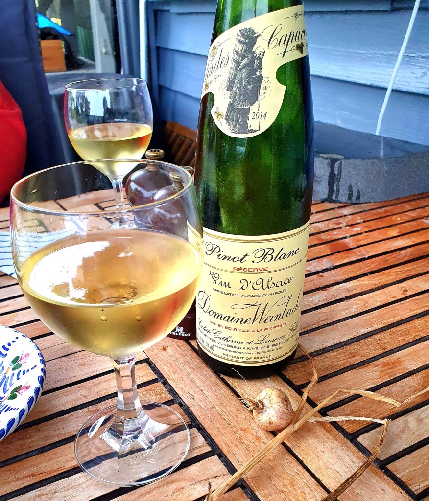 Serverte med brød og aioli. Som drikke hadde vi tørr hvitvin fra Alsace- gjett om vi koste oss…