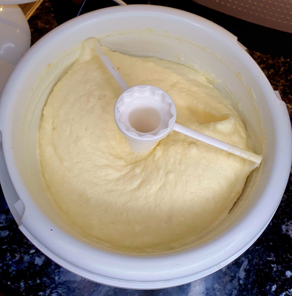 Dette er en ganske stor porsjon, nesten litt i største laget for min ismaskin så du kan med fordel halvere den.