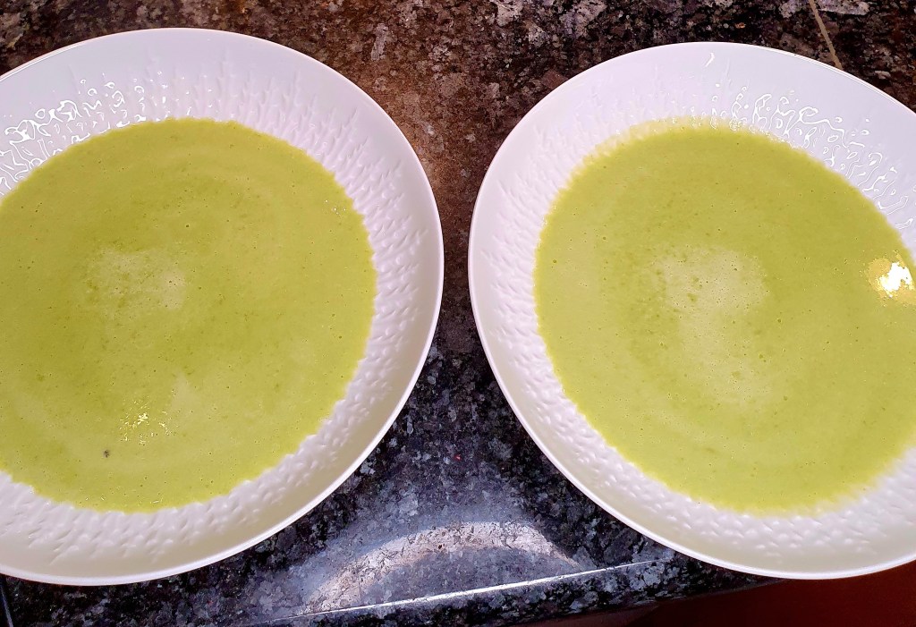Alle ingrediensene til pannacottaen, minus gelatinen, ble kokt opp i en gryte og fikk småkoke i 5 minutter. Klemte vannet ut av gelatinen og tilsatte den til erteblandingen. Rørte godt slik at gelatinen løste seg opp. Smakte væsken til med salt og pepper. Silte den gjennom en melsikt og fordelte væsken i porsjonsskåler (du kan også bruke glass) som ble satt kaldt noen timer. Lar du de stå over natt er det lurt å dekke til skålene/glassene med plast ellers vil det lett danne seg snerk på toppen.