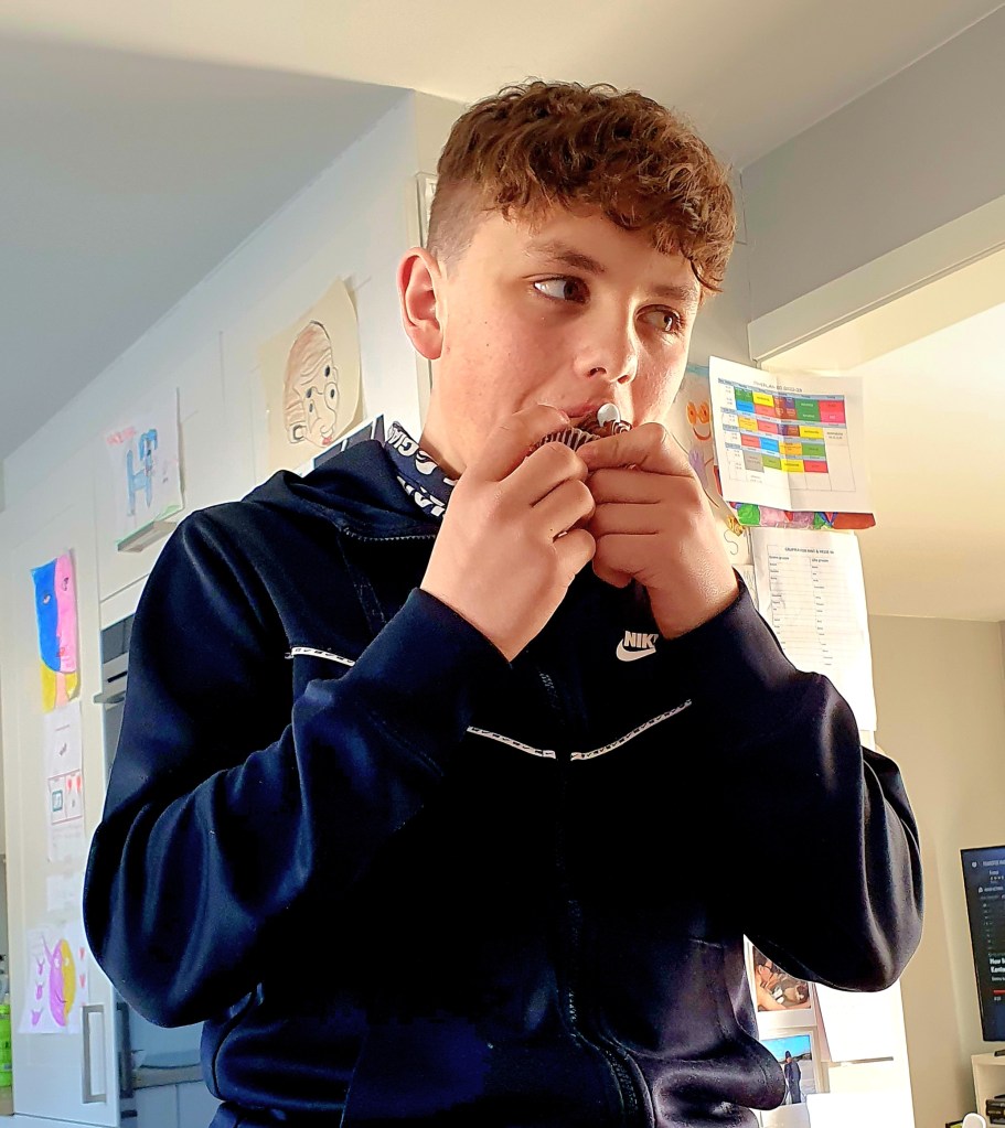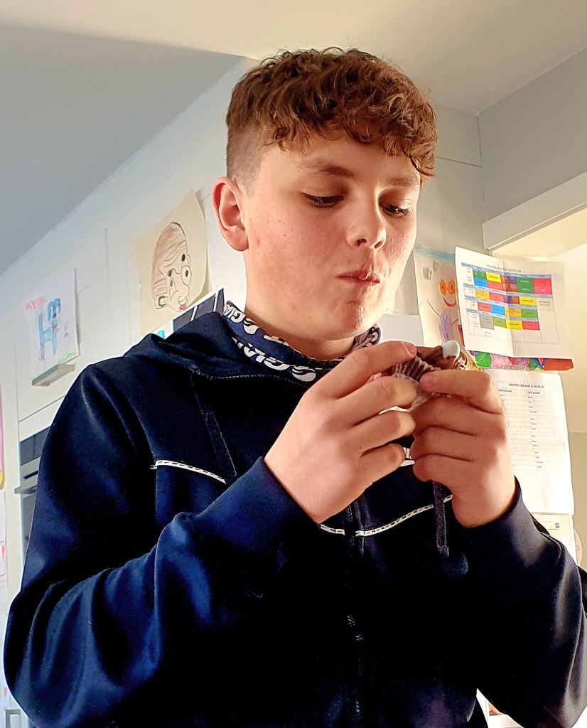 Muffinsene var luftige og smaksrike og kremen frisk med litt appelsinsmak. Han her likte dem iallefall: