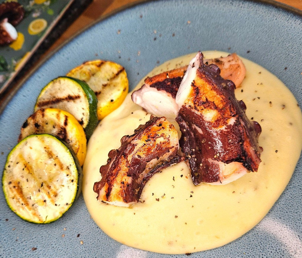 Når jeg er i sørligere strøk spiser jeg blekksprut så ofte jeg kan, enten friterte ringer av kroppen, friterte chipirones (miniblekksprut) eller grillede armer, alt med enkelt tilbehør. Det er noe av det beste jeg vet. Her hjemme har jeg vært veldig pysete med å prøve og lage selv. Nå har jeg endelig tatt mot til meg. Et par flotte armer ble kjøpt inn og det ble veldig vellykket. Kjempegodt rett og slett.