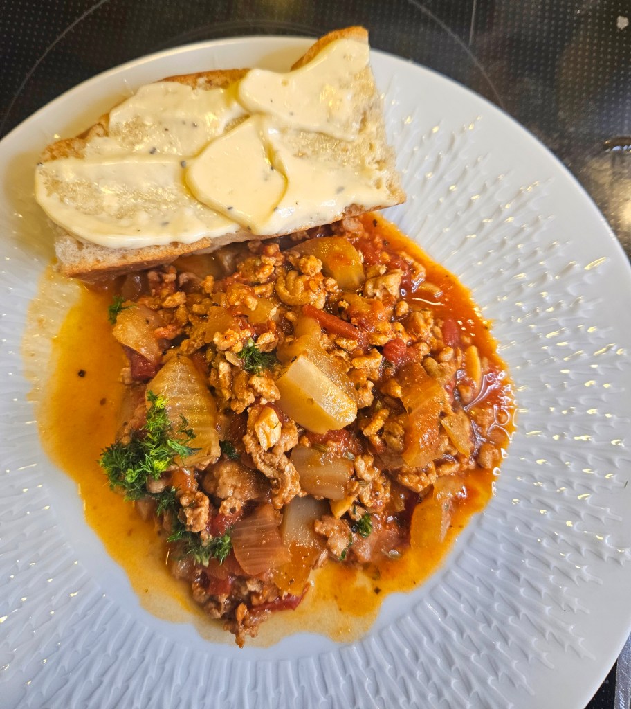 Oppskriften her byr på en litt enklere utgave ettersom det brukes svinekjøttdeig som da ikke trenger så lang koketid. Du kan gjerne bruke denne raguen som pastasaus, husk da å kutte alt i små biter.